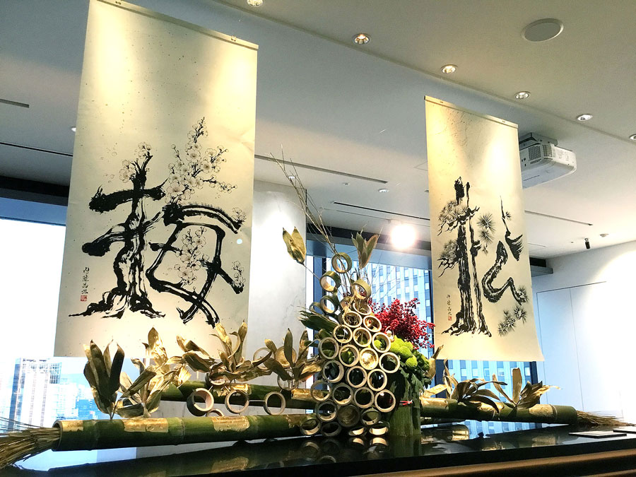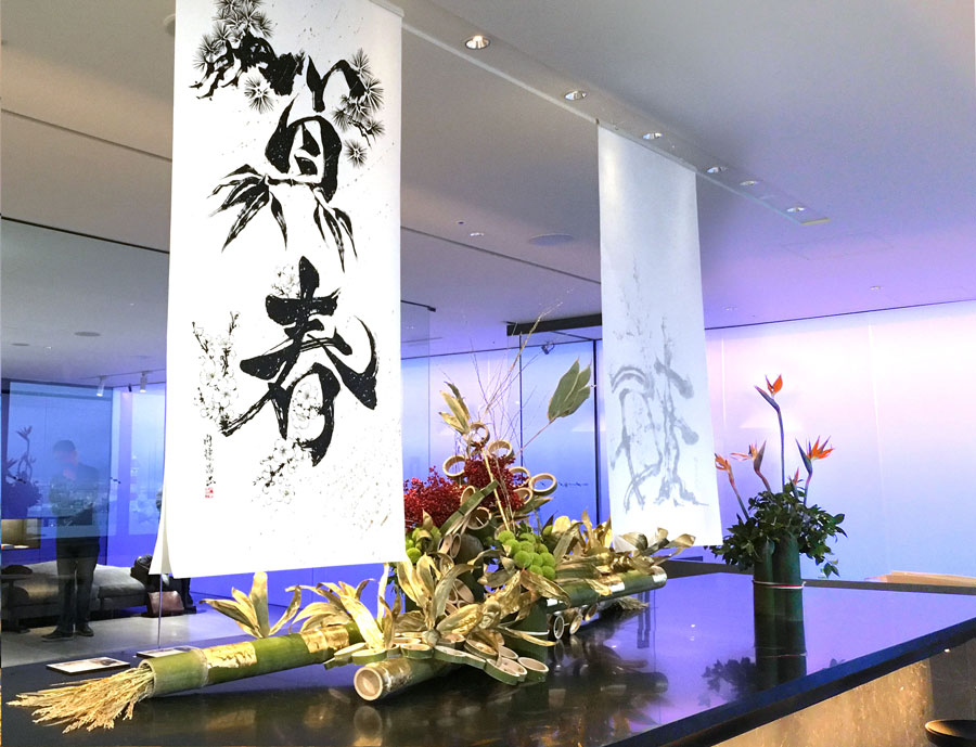 「株式会社丹青社様 正月飾りの書」〜華道家矢田青幸氏とコラボ〜制作